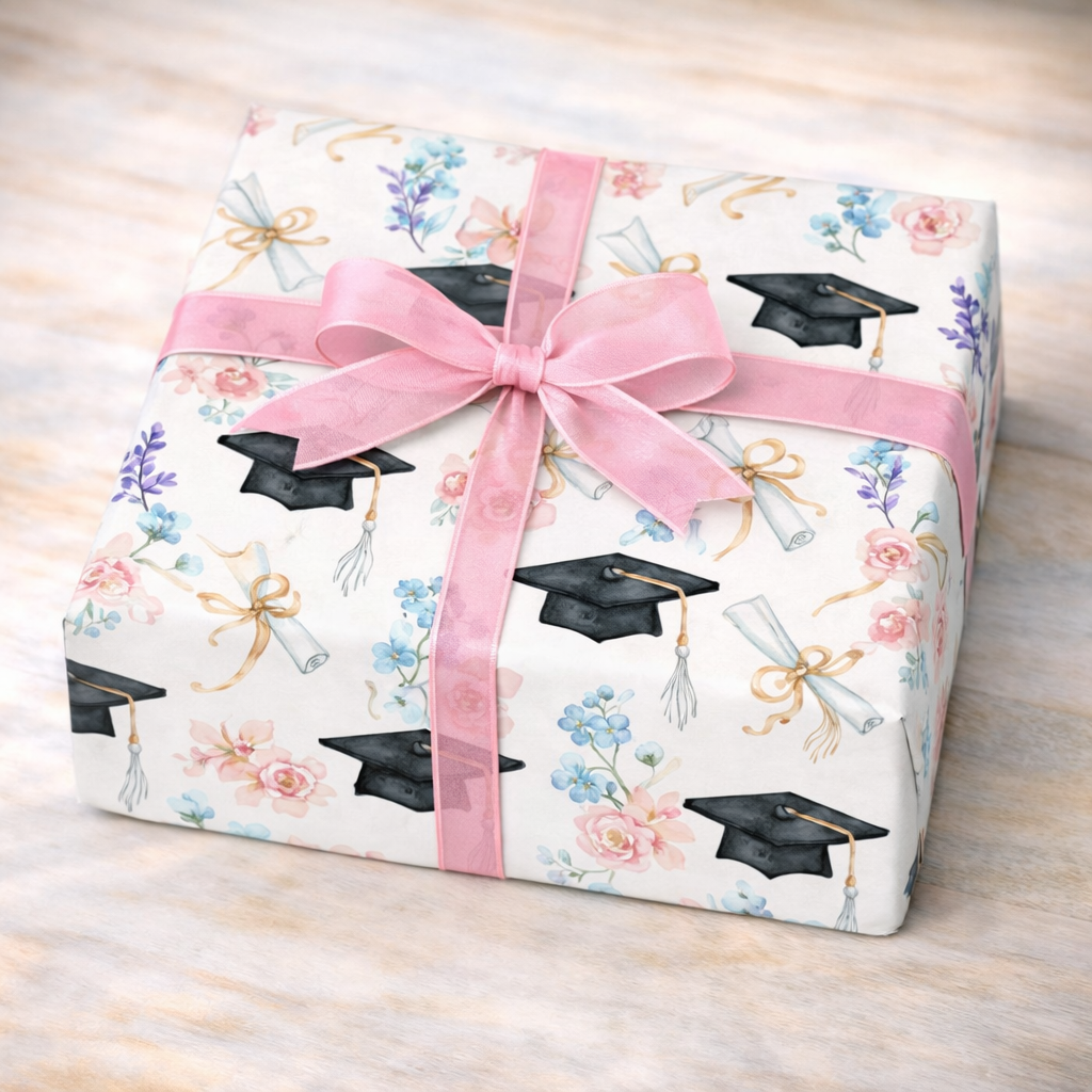 Shop graduation wrapping paper featuring caps, diplomas, school colors, and congratulations designs...